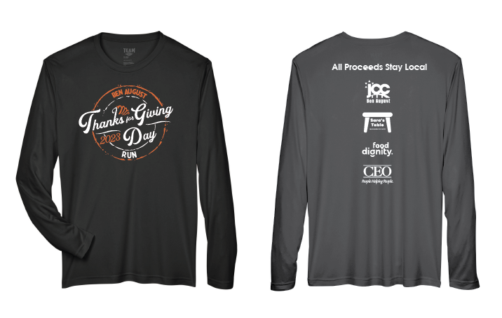 Ben August Memorial Thanks For Giving Day RunSwag Store, shop.getsomespirit.com/BA5K, will be available until one week after race 11/30/23 @ midnight. Various race apparel will be available such as hoodies, tees, long sleeves, moisture wicking items, hats, beanies, stickers & magnets to name a few. All items will be delivered approx 2-3 weeks later.